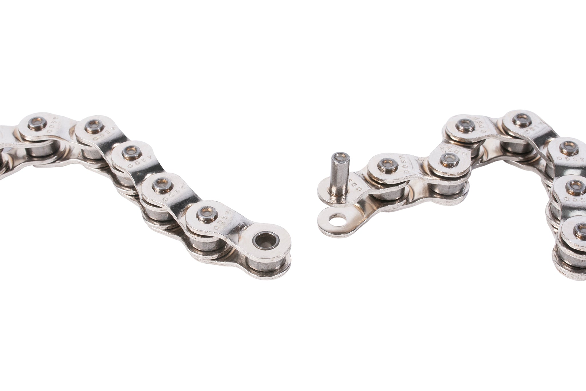 Half-links allow for a more precise fit on the wide variety of gearing and chainstay length combinations out there. Odyssey’s Bluebird Half-Link chain is built with proven chromoly link plates and hardened pins for greater durability.