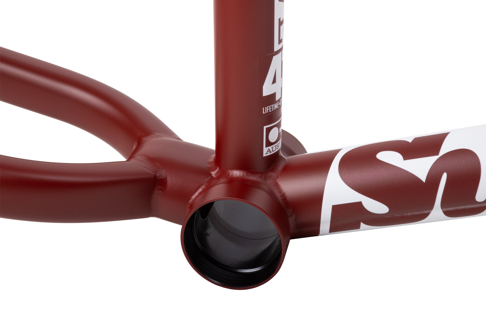 The Mid BB and Headtube is machined to its absolute minimum without sacrificing strength or durability. The machining happens after welding for a precision bearing fit.